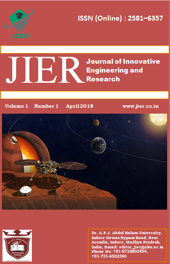 JIER (ISSN (Online) : 2581–6357 ): Journal of Innovative Engineering and Research is a scholarly open access, peer-reviewed, interdisciplinary, Half Yearly and fully refereed journal focusing on innovation, simulation, theories, methods and applications in Engineering and Technology. JIER covers all areas of Engineering and Technology, publishing refereed original research and review articles.